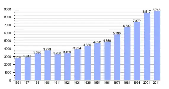 | Variação demográfica do município entre 1861 e 2011[3] |