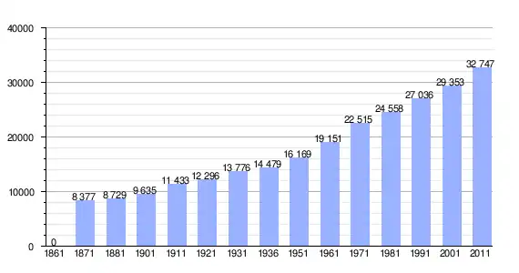 | Variação demográfica do município entre 1861 e 2011[3] |