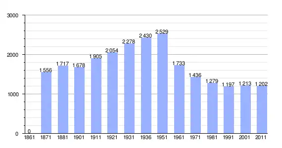 | Variação demográfica do município entre 1861 e 2011[3] |