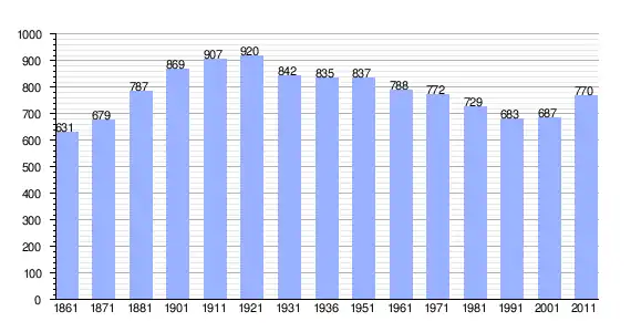 | Variação demográfica do município entre 1861 e 2011[3] |