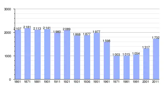 | Variação demográfica do município entre 1861 e 2011[3] |