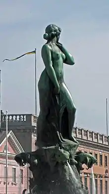 Fachada principal do Museu de Arte Ateneum trabalhada por vários artistas, com esculturas em medalhão de Vallgren, 1887