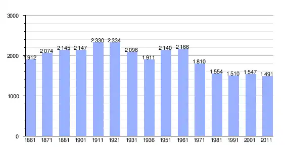 | Variação demográfica do município entre 1861 e 2011[3] |