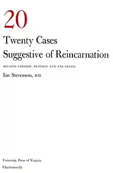 - Stevenson, Ian (1974). Twenty cases suggestive of reincarnation second (revised and enlarged) edition, University of Virginia Press. ISBN 978-0-8139-0872-4