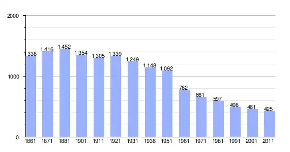 | Variação demográfica do município entre 1861 e 2011[3] |