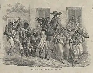 Na transição do século XVII para o XVIII, foram comuns no Brasil as danças de origem lusitana e algumas de origem afro-brasileira. Gregório de Matos (1636-1696), em sua obra poética,[24] cita pelo menos 12 danças, sendo 7 delas em apenas dois versos de sua “Regra de bem viver, que a persuasões de alguns amigos deu a uns noivos, que se casavam”, enquanto Raphael Bluteau (Suplemento, parte 2, 1728, p.220) indica a existência, em Portugal, de 11 “sons, ou peças mais ordinarias, que na viola se tocam” (quadro 13).[34]