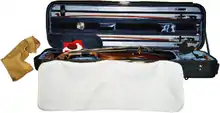 Esticada na parte inferior do arco estão as cerdas, que são feitas de vários fios de crina de cavalo, ou de material sintético.