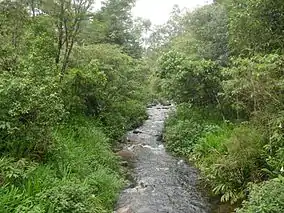 Rio Preto dividindo o Estado do RJ e MG em Visconde de Mauá/RJ, Brasil