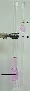 Em um braço do U há uma seção vertical com perfuração estreita precisa (o capilar). Acima disso há um bulbo, e no outro braço do U há um bulbo em um nível mais baixo que o primeiro. Quando em uso, o líquido é puxado para o bulbo mais alto por sucção, e então deixado fluir até o bulbo mais baixo através do capilar. Duas marcas (uma acima e uma abaixo do bulbo mais alto) indicam um volume conhecido. O tempo levado para o nível do líquido passar entre as duas marcas é proporcional à viscosidade cinemática. A maioria das unidades comerciais são fornecidas com um fator de conversão ou podem ser calibradas com um fluido cujas propriedades são bem conhecidas. É medido o tempo requerido para o líquido teste fluir pelo capilar de diâmetro conhecido entre as duas marcas de um viscosímetro de fator de conversão conhecido. Multiplicando o tempo requerido pelo fator do viscosímetro, obtém-se a viscosidade cinemática.[carece de fontes]