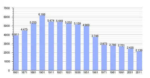 | Variação demográfica do município entre 1861 e 2011[3] |