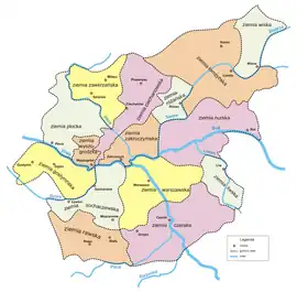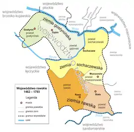 ![]() Mapa mostrando a localização da voivodia de Rawa (em vermelho) na República das Duas Nações. | |