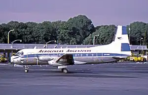 A Aerolíneas Argentinas receberia seu primeiro Avro em 18 de janeiro de 1962. A aeronave acidentada foi a primeira recebida, tendo recebido o prefixo LV-HGW e seria batizada Ciudad de Bahía Blanca. O Avro 748 prestaria serviços na empresa argentina até 1977, quando as duas últimas aeronaves restantes do lote inicial de 12 seriam vendidas a empresa britânica Dan Air. Os Avro 748 seriam batizados pelas Aeronalíneas com o nome de cidades sul americanas.[3]