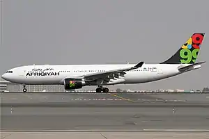 A aeronave acidentada era um Airbus A330-200, matrícula 5A-ONG e numeração de série 1024, entregue em setembro de 2009. Possuía 1 600 horas de voo e cerca de 420 pousos e decolagem. Os motores eram do modelo General Electric CF6-80E1.[3][4] Era configurada para transportar até 253 passageiros.[5][6] Neste voo transportava 93 passageiros e 11 tripulantes, a maioria líbios e neerlandeses, além de alguns britânicos e sul-africanos.[7][8] Segundo autoridades líbias no aeroporto, 22 líbios entre passageiros e tripulantes, morreram no acidente.