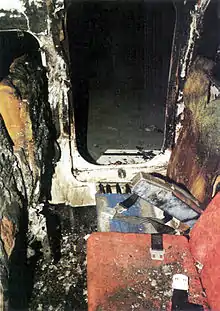 Quando os bombeiros determinaram que nenhum outro passageiro deixaria a aeronave sem assistência, entraram na cabine de passageiros com mangueiras de incêndio e tentaram extinguir o incêndio dentro da aeronave, mas combater o fogo de dentro da aeronave tornou-se inútil e inseguro.[1] Um bombeiro ficou levemente ferido quando uma explosão o jogou pela porta, até o chão fora da aeronave.[1] A causa da explosão não foi determinada, mas suspeita-se de sobrepressão induzida pelo calor e ruptura de uma lata de aerosol ou cilindro de oxigênio terapêutico.[1]