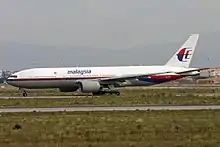A aeronave envolvida neste incidente era um modelo Boeing 777-200ER, matrícula 9M-MRD, número de série 28411. Teve o seu primeiro voo em 17 de julho de 1997 e foi entregue à Malaysia Airlines em 29 de julho de 1997.[12] Este modelo de aeronave é equipado com dois motores Rolls-Royce Trent 892.[13]