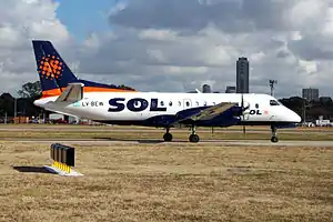 A aeronave Saab prefixo LV-CEJ foi uma aeronave de 1985 que iniciou suas operações naquele ano na companhia aérea Comair sob o registro N344CA, adquirida em 1997 pela Nortwest Express Airline, operando sob o registro N112PX e passando sob o mesmo registro nas mãos da Fina Air em 2003. Posteriormente, em 2006, foi operada pela companhia aérea RegionsAir, ainda mantendo seu registro, e em 2010 foi finalmente comprada pela Sol Lineas Aereas, operando sob o registro LV-CEJ até o dia do acidente, que destruiu totalmente a aeronave.