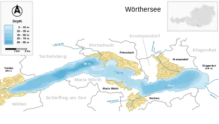 - a bacia leste, de Maria Wörth a Klagenfurt, com área de 8,0 km² e profundidade máxima de 73,2 m.