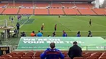 Em 2017, o Waikato Stadium sediou seus primeiros jogos de teste da liga de rugby com dois jogos do Grupo B da Copa do Mundo de Rugby League de 2017 - Samoa vs. Tonga (18.156 espectadores) e Nova Zelândia vs. Tonga (24.041 espectadores).[6]