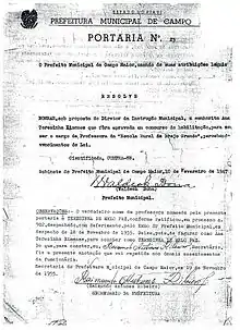 Portaria em que Waldeck Bona, como prefeito, nomeia uma professora.