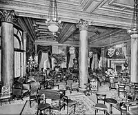 Além da recepção estava um corredor que levava ao Salão Empire, com uma alcova ao lado contendo os elevadores e a grande escadaria. Ali perto existia o Salão Maria Antonieta, que era usada como sala de recepção para as mulheres. Era mobilhada com antiguidades do século XVIII trazidas da Europa em 1892 pelo casal Boldt, incluindo um busto de Maria Antonieta e um relógio antigo que pertencia a ela. O teto tinha afrescos por Will Hicok Low, com o principal sendo O Nascimento de Vênus.[65] O Café dos Cavalheiros era mobiliado com "painés de carvalho negro robustos, murais e candelabros de chifres de veado".[66]