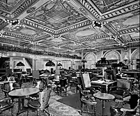 O Salão Empire era o maior e mais luxuosamente decorado aposento de todo o Waldorf, tornando-se pouco depois de sua inauguração um dos melhores restaurantes de Nova Iorque, rivalizando com o Delmonico's e o Sherry's.[67] Ele foi modelado a partir do grande salão construído pelo rei Luís II da Baviera dentro do Palácio Nymphenburg em Munique, tendo tapeçarias de cetim, estofamentos e pilares de mármore todos em verde claro e afrescos pintados por Frank Crowninshield.[68] O restaurante do Waldorf era todo decorado no estilo império e seus pilares eram de mármore verde escuro, enquanto as pilastras opostas eram de mogno, com entalhes nos painéis. O topo e a base das colunas e pilastras eram foleadas a ouro. O teto era dividido por vigas pesadas que iam de coluna a coluna, com o espaço entre essas sendo dividido entre painéis de diferentes formatos com molduras.[30] O esquema de cores era em tintas de verde claro e creme. Os painéis no teto tinham afrescos com pinturas em vermelho roseado sobre azul claro. As paredes eram principalmente de mogno e ouro, sobrando pouco espaço entre as aberturas para um pouco mais de cor.[69] Dentre os outros aposentos estava uma sala de fumar no estilo turco, com divãs baixos e antigas armaduras mouras como decoração, e o salão de bailes, que era adornado de branco e ouro no estilo Luís XIV.[61]