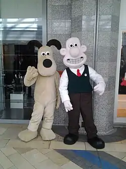 ![]() Atores fantasiados de "Wallace & Gromit" levantando dinheiro para a "Gromit Unleashed" | |