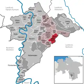 | Localização de Wangelnstedt no distrito de Holzminden | |