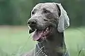 Weimaraner[Nota] é uma raça de cães oriunda da Alemanha, um cão de aponte da categoria gun dog. A sua origem não é bem conhecida, embora se saiba que o seu nome vem do desportista Carlos Augusto, Grão-Duque de Saxe-Weimar-Eisenach. Apesar de conhecida desde 1600, o padrão deste possível descendente do braco alemão de pelo curto só foi estabelecido em 1800 e apenas no século XX se tornou popular fora da Europa, em particular por não haver antes uma comercialização que exportasse exemplares para outros lugares que não até a Áustria. Estes caninos foram criados pelos nobre para realizarem diversas modalidades de caça, entre elas a desportiva e a de animais de grande porte. A sua personalidade é descrita como teimosa, sendo portanto indicado para donos mais experientes; é inteligente e dócil. Fisicamente é um animal que pode atingir 40 kg. Sua pelagem varia entre cinza-rato, cinza-corça e cinza-prateado. Possui duas variedades: pelo longo e pelo curto.[1][2][3]