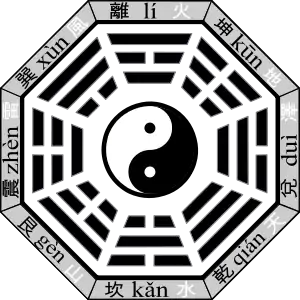 O diagrama que segue mostra a sequência de trigramas tradicionalmente atribuída a Fu Xsi (3000 a.c.). Aparece pela primeira vez nos escritos de Shao Yung no século undécimo de nossa era e parece que se trata de uma sequência de números binários.[6][7]