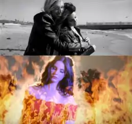 No entanto, próximo ao final da gravação e no exato momento em que o teremim começa a tocar, o vídeo exibe a sua única cena em cor, na qual Del Rey aparece envolta em chamas, usando um vestido vermelho e realizando movimentos ao ritmo da canção, enquanto imagens em preto-e-branco das ruas de Sunset Boulevard e de seu jovem são exibidas alternadamente atrás da artista.[101][110][111] Esta cena é intercalada com diversas outras, como a cantora em um carro e chamas sendo refletidas em seus olhos e, nos segundos finais da gravação, Del Rey aparece de braços abertos e vestida com uma jaqueta de couro preta também em chamas e sobreposta ao mar.[103][109][111] Alguns críticos notaram a cena como simbólica à letra da canção, enquanto outros identificaram-na como um sinal de que a artista estaria a mudar de direção musical e queimando todo o seu passado.[112][113]