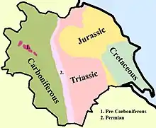 No cinturão do calcário dolomítico, para o leste das áreas de Leeds e Wakefield, há um cume elevado com uma paisagem suavemente ondulada, atravessada por vales secos. Aqui, há um grande número de casas de campo e propriedades com parques, bosques, imóveis e plantações