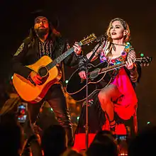 Demonstração de 24 segundos de "Who's That Girl", cujo refrão apresenta letras em espanhol.