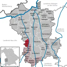 | Localização de Wiesenbach no distrito de Günzburg | |