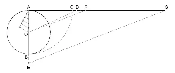 Processo de Specht. O segmento AG mede aproximadamente o comprimento da circunferência (2πr).