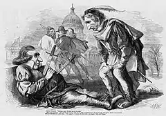 Nova Iorque era importantíssima para a eleição; uma derrota de Lincoln no estado levaria a um impasse no Colégio Eleitoral. Seward, logo depois de retornar de sua viagem pelo meio-oeste, embarcou em outra, desta vez para discursar para multidões do estado de Nova Iorque. Ele foi para a cidade de Nova Iorque à pedido de Weed e realizou um discurso patriótico para uma enorme multidão em 3 de novembro, três dias antes da eleição.[102] Na eleição, Lincoln venceu em quase todos os estados do norte, enquanto Breckinridge venceu todos no sul, Bell três estados fronteiriços e Douglas o Missouri, o único estado em que Seward fez campanha e que Lincoln não venceu. Lincoln foi eleito.[103]