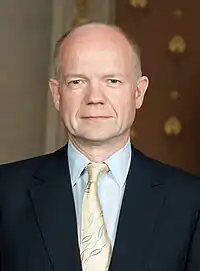 William Jefferson Hague FRSL, MP (Rotherham, 26 de março de 1961) é um político britânico, filiado ao Partido Conservador, do qual foi líder de 1997 a 2001. De 1989 a 2001, Hague foi membro do Parlamento britânico, representando North Yorkshire e, posteriormente, como líder da oposição do Governo Blair. Em 2010, Hague foi designado Primeiro Secretário de Estado[1] e Ministro das Relações Exteriores do Gabinete de Cameron.
