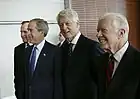 - «Rain falls, partisanship falls away for Clinton library opening». Tribune Company. 18 de novembro de 2004