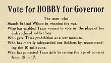 William Pettus Hobby (26 de março de 1878 — 7 de junho de 1964) era conhecido como o editor / proprietário da Beaumont Enterprise quando entrou na política e no Partido Democrata. Eleito em 1914 como vice-governador do Texas, em 1917 ele conseguiu se tornar o 27º governador do estado americano do Texas, depois que James Edward "Pa" Ferguson foi destituído e obrigado a renunciar. Em 1918, Hobby ganhou o cargo por direito próprio, cumprindo um mandato completo.