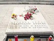 Władysław Anders morreu em Londres em 12 de maio de 1970, e foi enterrado, de acordo com seus desejos, entre os seus soldados caídos do II Corpo polonês no Cemitério de Guerra Polonês em Monte Cassino, na Itália.