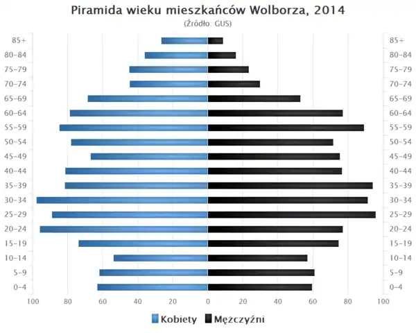 - «Wolbórz (Łódź) mapas, imobiliário, GUS, acomodações, escolas, região, atrações, códigos postais, desemprego, salário, ganhos, educação, tabelas, demografia, jardins de infância». Polska w liczbach (em polonês). Consultado em 7 de fevereiro de 2020