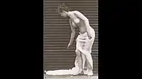 Uma série de imagens de uma moça nua pegando uma saia translúcida do chão. O autor alegava que a ausência de roupas e outros adornos tornava a locomoção humana mais fácil de ser estudada.