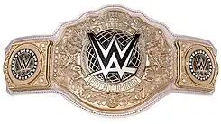 ![]() O cinturão do Campeonato Mundial Feminino com placas laterais padrão. | |||||||||||||||||||