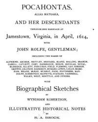 - Robertson, Wyndham (1986) [1887]. Pocahontas, alias Matoaka, and Her Descendants through Her Marriage with John Rolfe. Baltimore, Maryland: Genealogical Publishing Co., Inc.