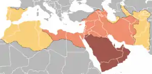 O Califado Ortodoxo (em árabe: الخلافة الراشدية) foi o primeiro de quatro califados da história do Islamismo, fundado após a morte do profeta Maomé em 632. No seu auge, o califado se estendeu pela península arábica, Cáucaso, norte da África e planalto iraniano formando o maior império em extensão até a época.[1] A conquista da Pérsia substituiu o zoroastrismo da cultura local pelo islamismo, entretanto vários outros elementos da cultura foram preservados e incorporados pelos povos árabes.[2] Por volta de 711, a Península Ibérica foi invadida pelos muçulmanos sob comando de Tárique do califado Omíada. Cruzaram o mar Mediterrâneo na altura do estreito de Gibraltar e entraram na Península vencendo Rodrigo, o último rei visigodo da Hispânia. Nos séculos seguintes alargaram suas conquistas formando o território de Al-Andalus, que governaram por quase oitocentos anos. Apesar dos conflitos constantes que duraram até a Reconquista de todo o território, a cultura árabe teve um intenso contato com os reinos cristãos.[3]