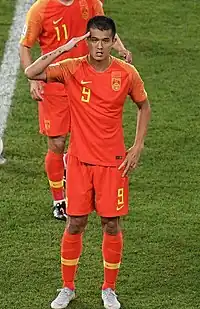 Fez sua estreia pela Seleção Chinesa no ano de 2017, marcando um gol aos 25 minutos da primeira etapa em um jogo contra as Filipinas. Jogo que terminou com placar de 8x1 para a Seleção Chinesa.[4]