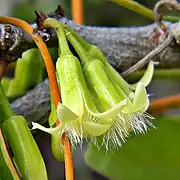 As folhas são simples, alternadas ou agrupadas em brotos esporádicos, com um formato lanceolado (lançado) a elíptico (oval), obtusas, emarginadas ou retilíneas no ápice. As folhas crescem até 2,5 a 8 cm (1 a 3 pol) de comprimento e um a quatro cm (0,4 a 1,6 pol) de largura, têm uma espessura que varia de fina a semisuculenta e possuem de três a sete pares de nervuras laterais difíceis de observar em ambos os lados da folha. Eles se curvam para cima ao longo da nervura central.[5][7][8]