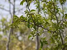 Possui diversos nomes populares, incluindo: ameixa-do-mato,[20] ababoni,[21] ameixa-do-brasil,[22] ameixa-da-terra,[23] ameixa-do-pará,[24] ameixeira-da-baia,[25] ameixo-de-espinho,[26] limão-bravo,[27] limãozinho-do-mato,[28] dentre outros.