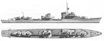 | Armamento | 4 canhões de 149 mm 4 canhões de 37 mm 7 canhões de 20 mm 8 tubos de torpedo de 533 mm 60 minas navais |