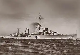 | Armamento | 5 canhões de 127 mm 4 canhões de 37 mm 6 canhões de 20 mm 8 tubos de torpedo de 533 mm 60 minas navais |