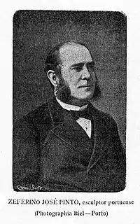 - Habita a casa n.° 131 a 133 e chama-se Zeferino José Pinto, entalhador da casa real e director da obra de talha, no palacio da Bolsa commercial d'esta cidade do Porto, que tem sido e continua a ser, verdadeira e magnifica eschola de entalhadores, estucadores, carpinteiros e pedreiros. É admirado por nacionaes e estrangeiros o extremo apuro das referidas quatro artes nas decorações d'aquelle palacio, e tanto que o grande jury da ultima exposição internacional de Vienna d'Austria, não hesitou em conferir o diploma de merito aos variados especimens da talha que a associação commercial alli expoz.